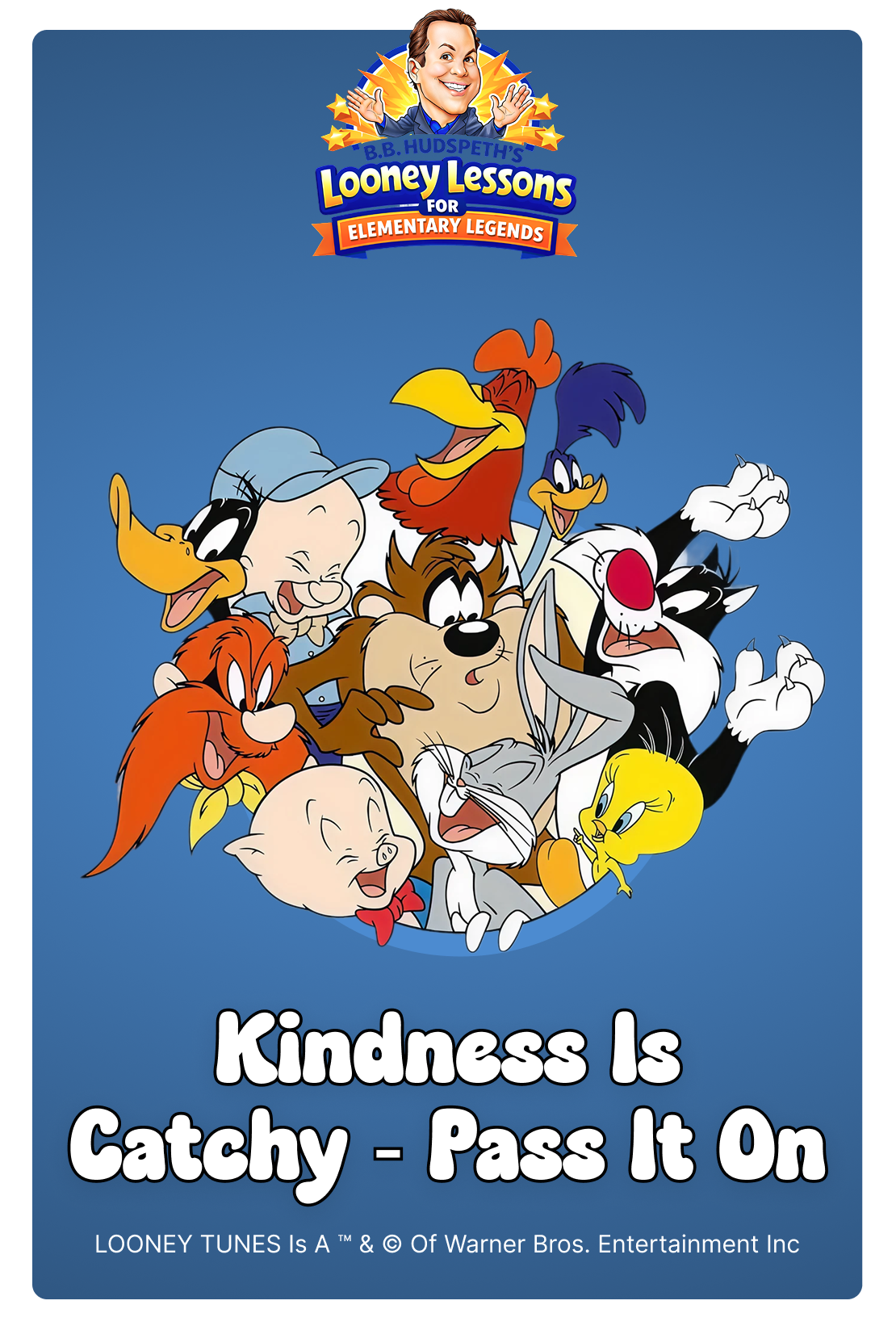 From the age of 13, B.B. has brought characters to life as a voice impressionist, using humor and storytelling to inspire elementary students. He highlights three defining lessons, an act of kindness from an actor, commitment learned from a missed football practice, and perseverance shown by his mentor, cartoon voice legend Mel Blanc, to encourage students to build character and pursue their goals. B.B. has voiced Looney Tunes and other classic cartoon characters for live events, radio shows, and video games. He is also a movie executive producer, the creator of Old West Legend Scrappy Higgins, and a nationally recognized collector of Western film and television memorabilia featured in museums and publications nationwide.